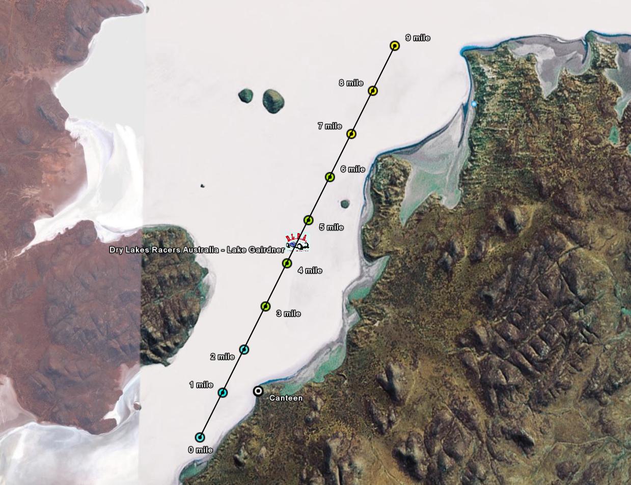 Lake Gairdner is a National Park, administered by the Department of Environmnent, Heritage and Aboriginal Affairs for the State of South Australia. Although the lake is some 80 miles long it is only that area south of the 32nd parallel that they have given permission for Land Speed Racing. Of this area the DLRA uses only a small portion, closest to theĀ Mt. Ive Station, As this is the only "made road" to the lake.