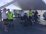 Get in the queue, note there are seperate tents / queues for cars and bikes.