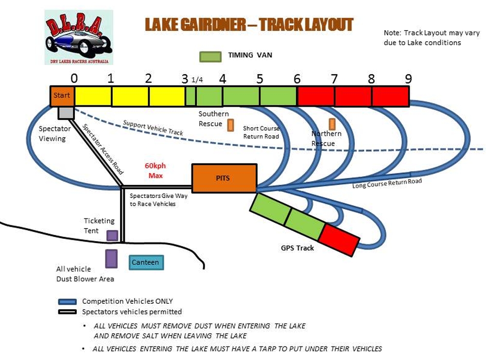 Support vehicles must use the designated track provided to travel from the track 1 start line to retrieve their vehicle. As they travel past the pits they are restricted to 80 kph.